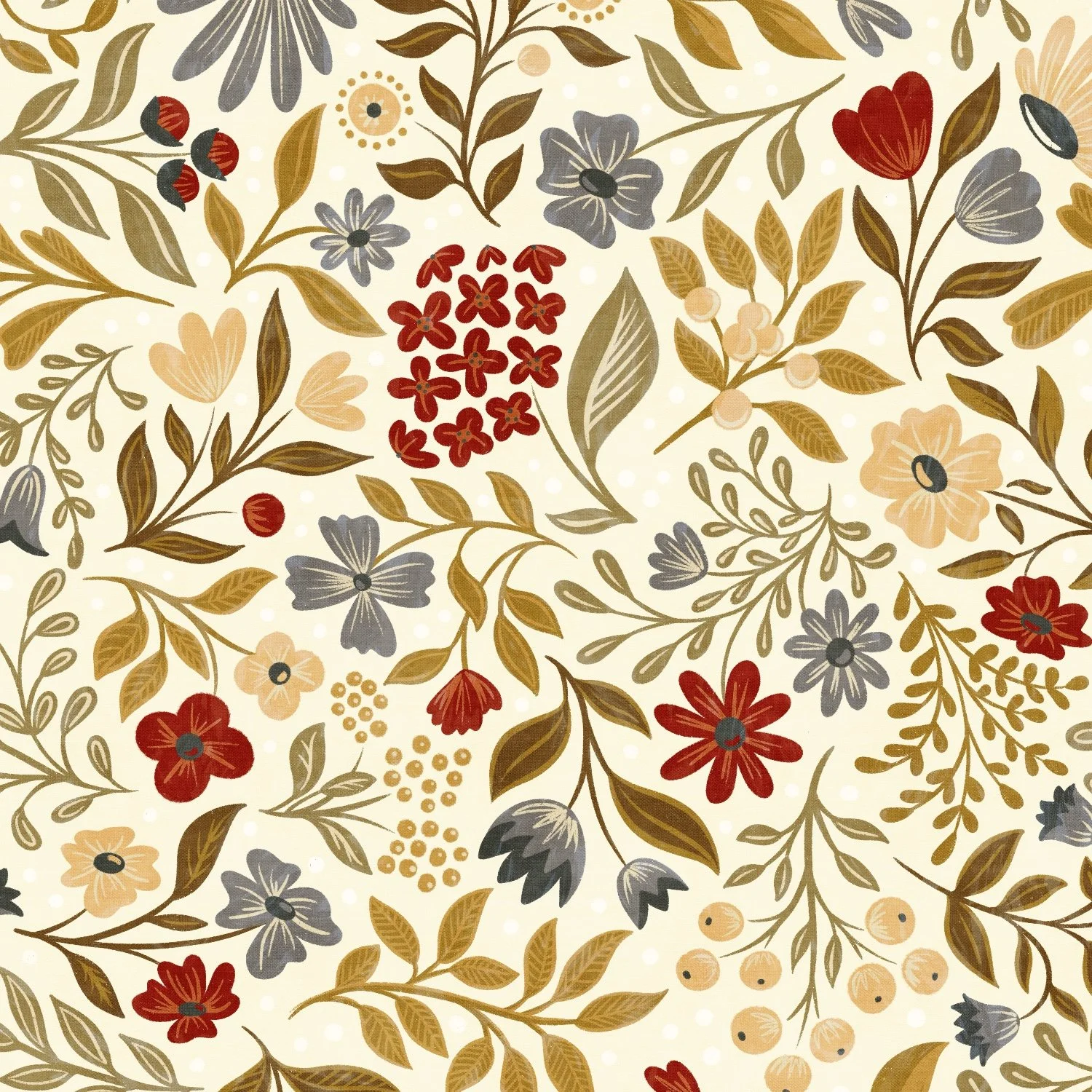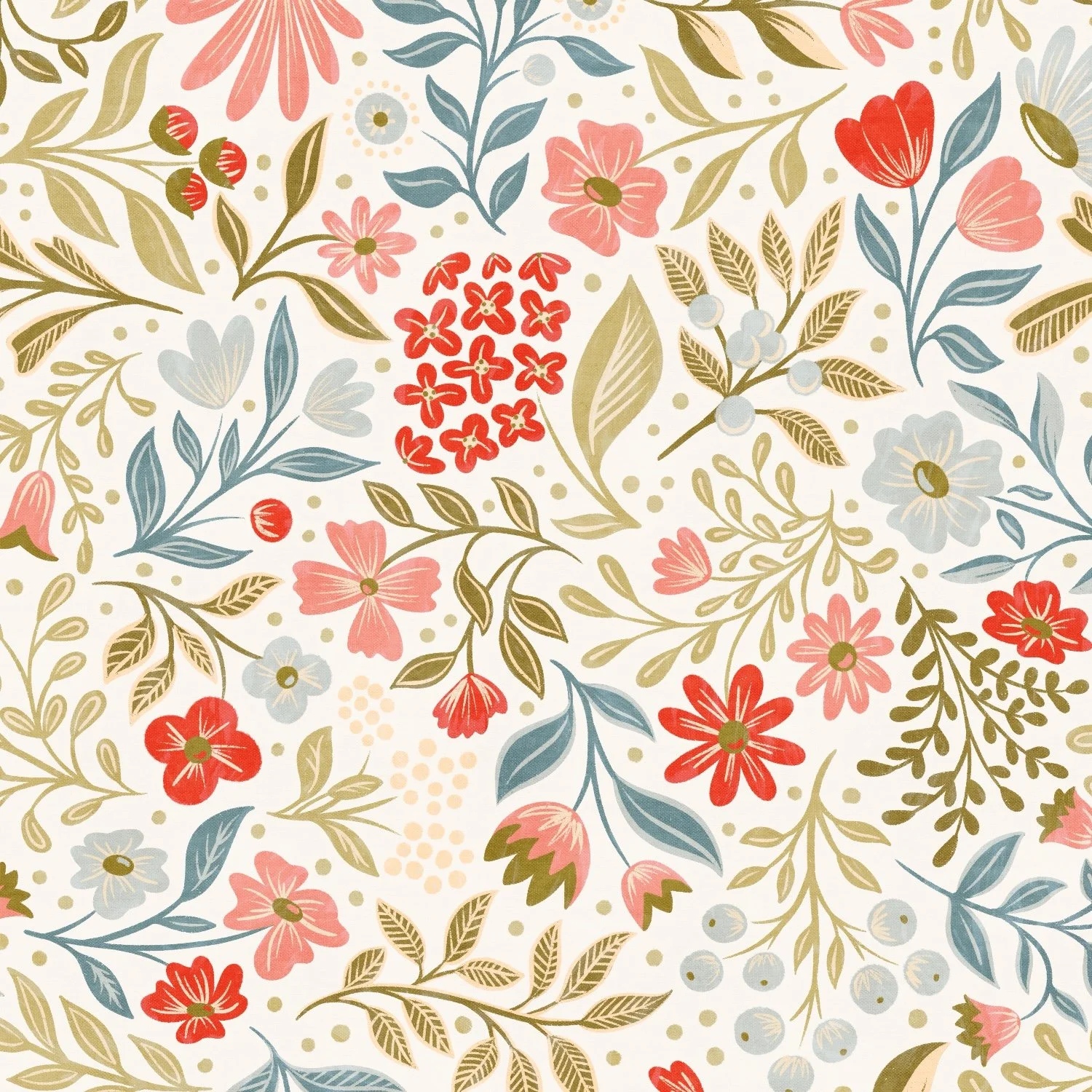 Small, detailed, hand-drawn scattered florals in several color ways. Perfect for children’s clothing and decor, cottagecore design, and stationery.